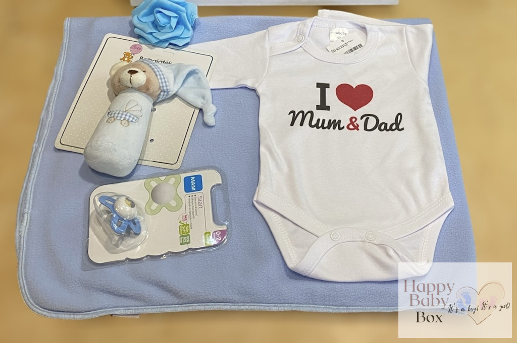 Kicsi - Fiús "I love Mum & Dad" Babaköszöntő csomag