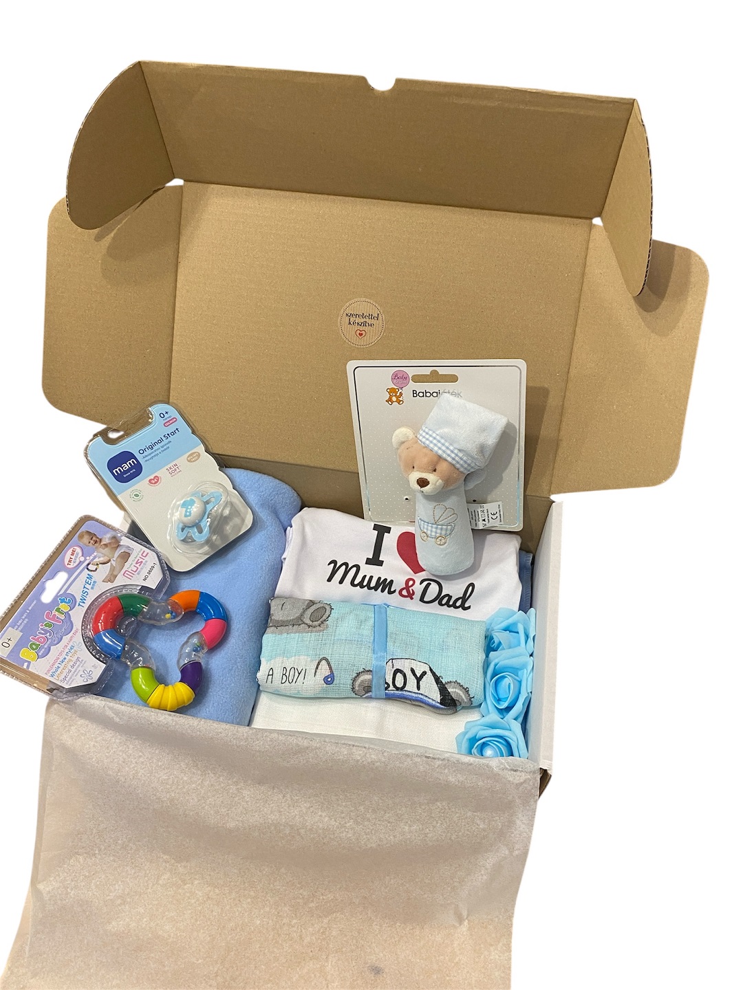 Ha szeretnétek, a csomaghoz babaköszöntő kártyát is tehetünk, amelyre személyes üzenet kerülhet. Ehhez csak vegyétek fel velünk a kapcsolatot, és mi gondoskodunk róla, hogy a köszöntés igazán szívhez szóló legyen.
